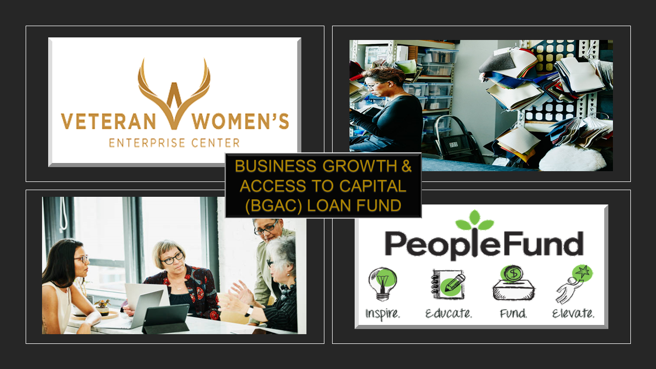 The Veteran Women’s Enterprise Center (VWEC) has partnered with PeopleFund to create the VWEC Business Growth and Access to Capital (BGAC) loan fund to support business growth and access to capital for women veteran and female military spouse entrepreneurs.