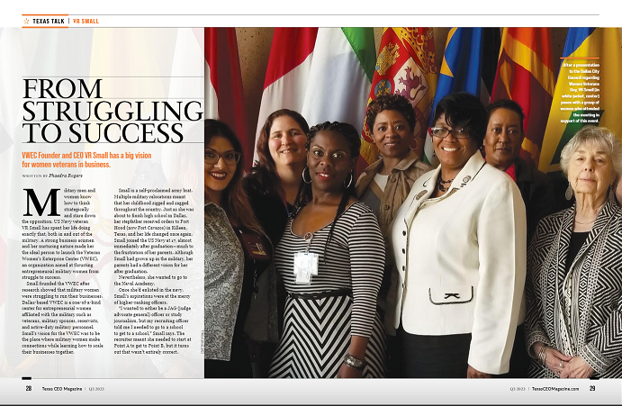 Military men and women know how to think strategically and stare down the opposition. US Navy veteran VR Small has spent her life doing exactly that, both in and out of the military. A strong business acumen and her nurturing nature made her the ideal person to launch the Veteran Women’s Enterprise Center (VWEC), an organization aimed at thrusting entrepreneurial military women from struggle to success.